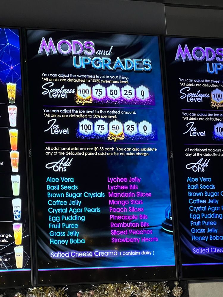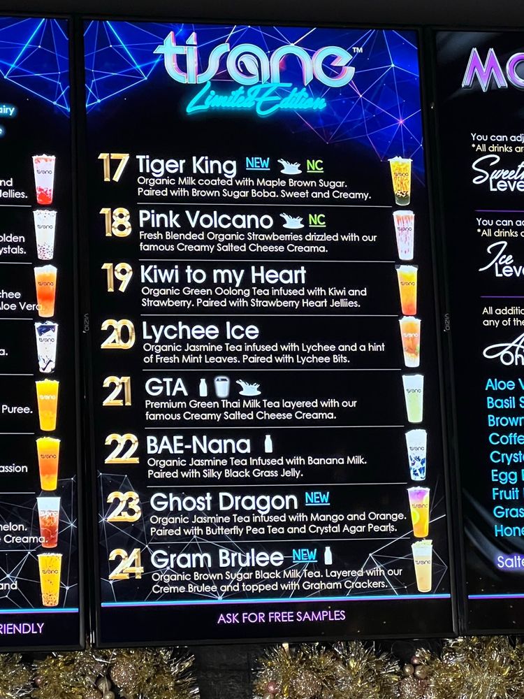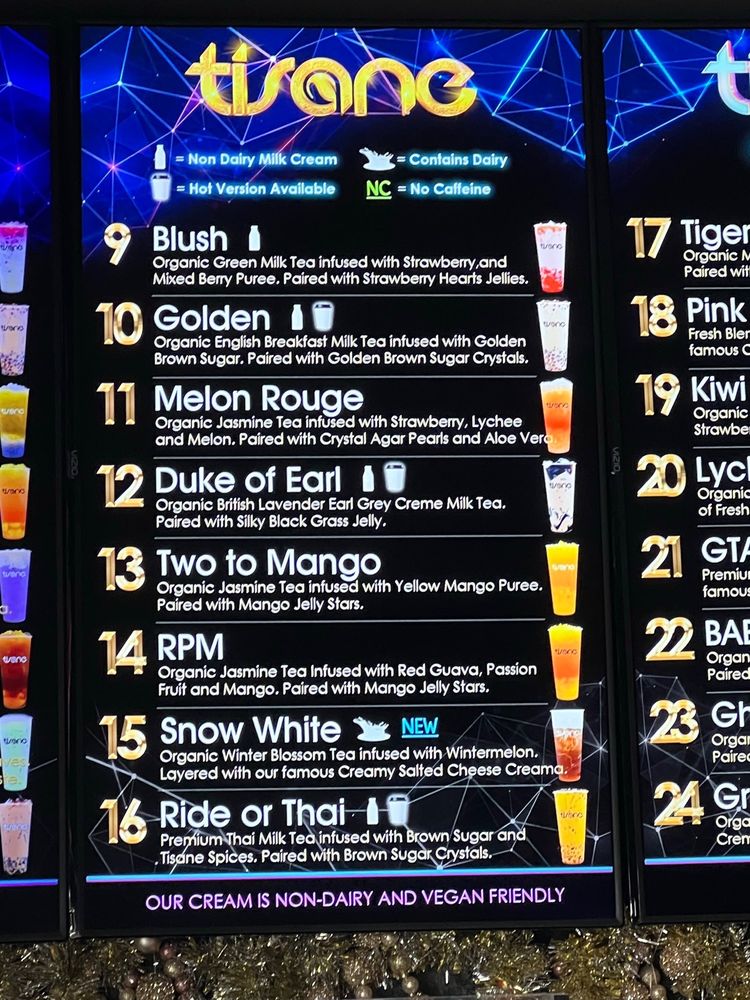 Tisane, a popular spot in San Jose, offers a unique selection of juices, smoothies, bubble teas, and coffee options. With a range of amenities like delivery, takeout, and vegan options, Tisane caters to a diverse clientele. Customers praise the innovative drink options like the Blush, Jade, and GTA, each offering a refreshing and delicious experience. The ambiance, resembling a trendy nightclub with neon lights, provides ample seating indoors and outdoors. While some mention inconsistent service, the overall experience at Tisane is positive, especially for late-night boba cravings. From the Two to Mango to the Kiwi to My Heart drink, customers appreciate the variety and quality of beverages offered. Tisane's vibrant atmosphere and flavorful drinks make it a must-visit destination for boba lovers in the area.
